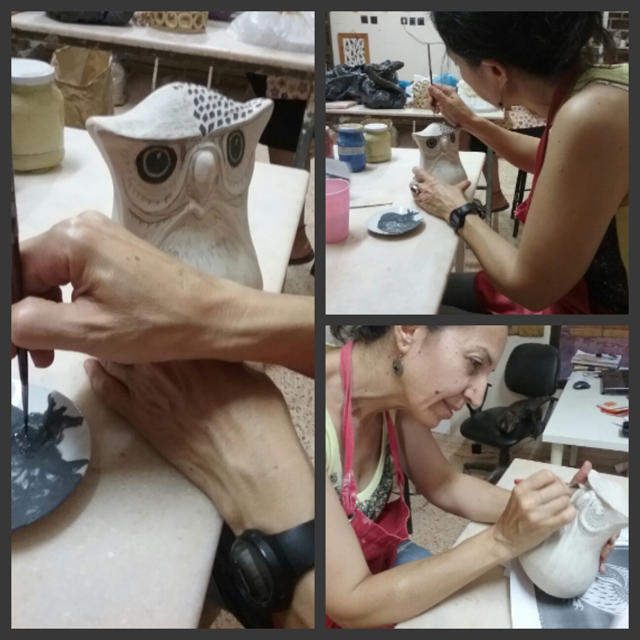 Geçenlerde okuduğum bir yazıda seramigin insan sağlığına faydalarindan madde madde bahsetmişler, bu kadar maddelemeye gerek yok aslında. Seramikle, sanatin herhangi bir dalı ile uğraşan insanların gözlerine bakın diycem ama bakamazsiniz, o kadar yaptıkları işle butunlesmislerdirki gözlerini işlerinden ayıramazlar en iyisi fotoğrafın geneline bakıp ortamdaki güzel havayı hissetmeye çalışın.